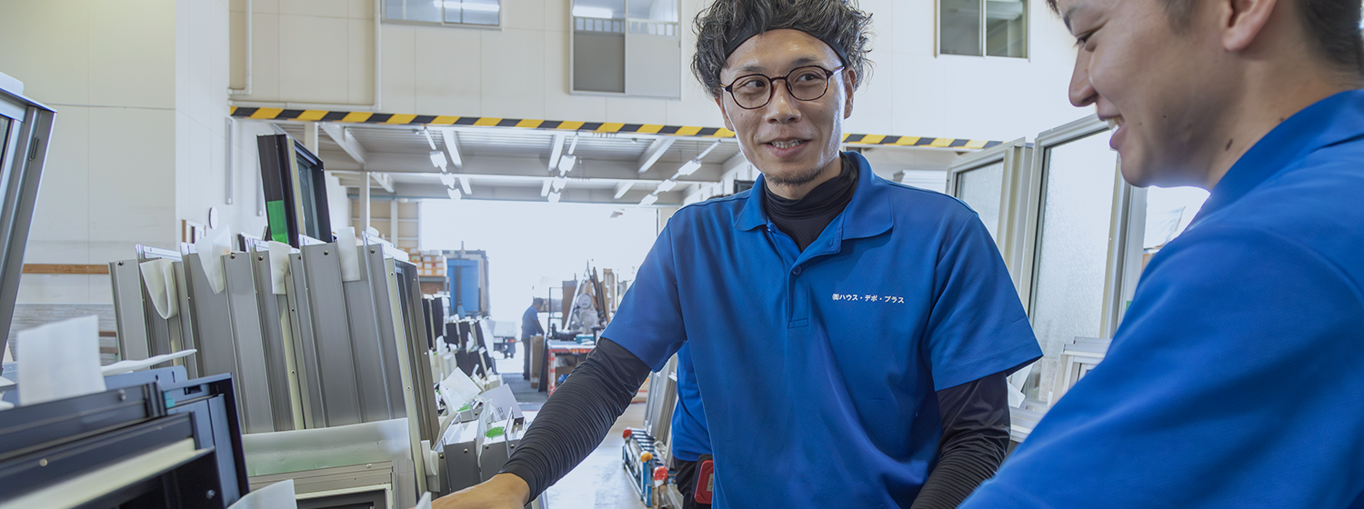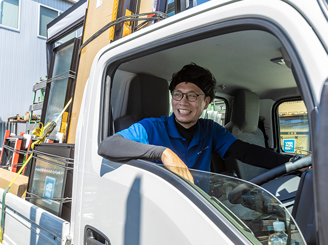 東北から九州まで、本社を合わせて全国9カ所の営業所・出張所を設置し、お客様のご要望に合わせて住宅用アルミサッシの組立と配送を行っています。配送は、1台に1棟分の玄関・枠・障子・シャッターを積み込み、ビルダー様のご要望に合わせて作業しやすい形で納入。現場での作業効率アップに貢献しています。