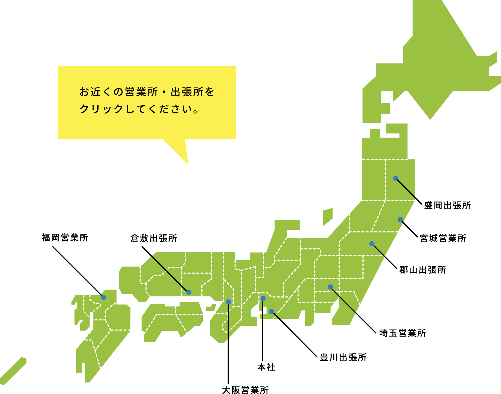 | 岩手県 | 盛岡市、八幡平市、滝沢市、岩手郡(雫石町、葛巻町、岩手町)、紫波郡(紫波町、矢巾町)、奥州市 、一関市、花巻市、北上市、遠野市、胆沢郡(金ケ崎町)、西磐井郡(平泉町)、和賀郡(西和賀町)、釜石市 、宮古市、大船渡市、陸前高田市、気仙郡(住田町)、上閉伊郡(大槌町)、下閉伊郡(山田町、岩泉町、田野畑村、普代村)、久慈市 、二戸市、二戸郡(一戸町)、九戸郡(野田村、洋野町、軽米町、九戸村) |
